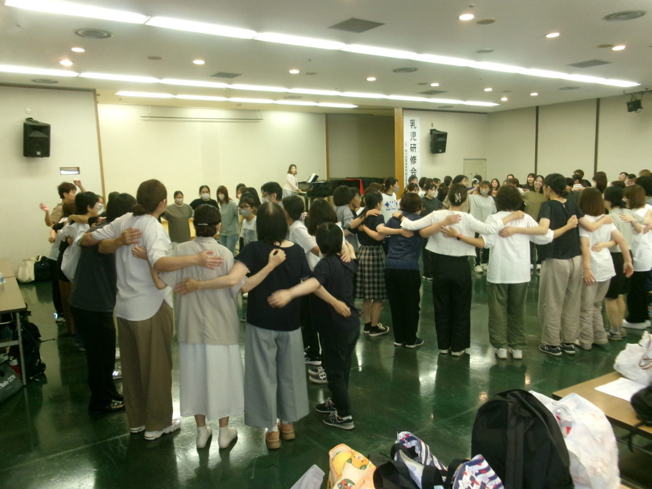 最後の集団遊びでは、全員が輪になり肩を組み歌い会場がひとつになった瞬間があり感動